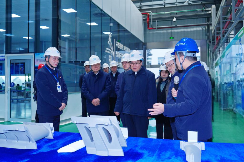 1月5日,张玉卓深入东方电气集团,实地调研东方汽轮机叶片加工无人车间、高温部件分厂及全国重点实验室,详细了解企业在数智化转型及核心技术研发进展。集团公司党组书记、董事长罗乾宜陪同调研。