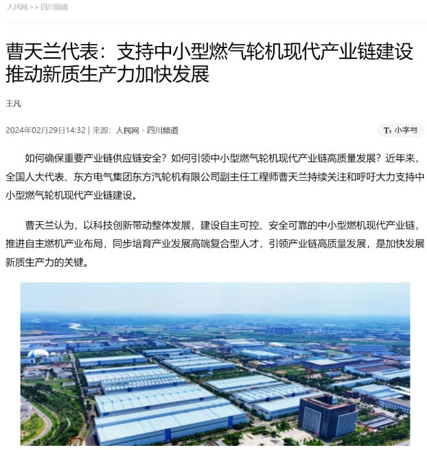 如何确保重要产业链供应链安全?如何引领中小型燃气轮机现代产业链高质量发展?近年来,全国人大代表、东方电气集团东方汽轮机有限公司副主任工程师曹天兰持续关注和呼吁大力支持中小型燃气轮机现代产业链建设。