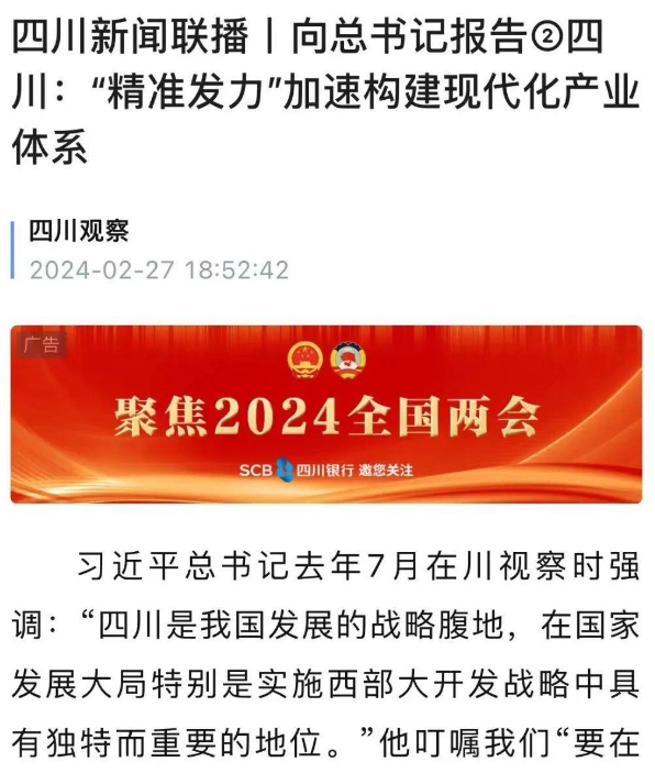 向总书记报告②四川:“精准发力”加速构建现代化产业体系
