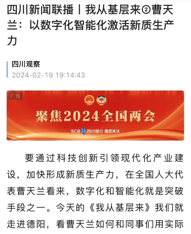 全国两会期间,曹天兰代表认真履职尽责,将行业的发展、企业的诉求、基层的心声,向大会和媒体积极传递。多家主流媒体对曹天兰代表的建议进行了报道。