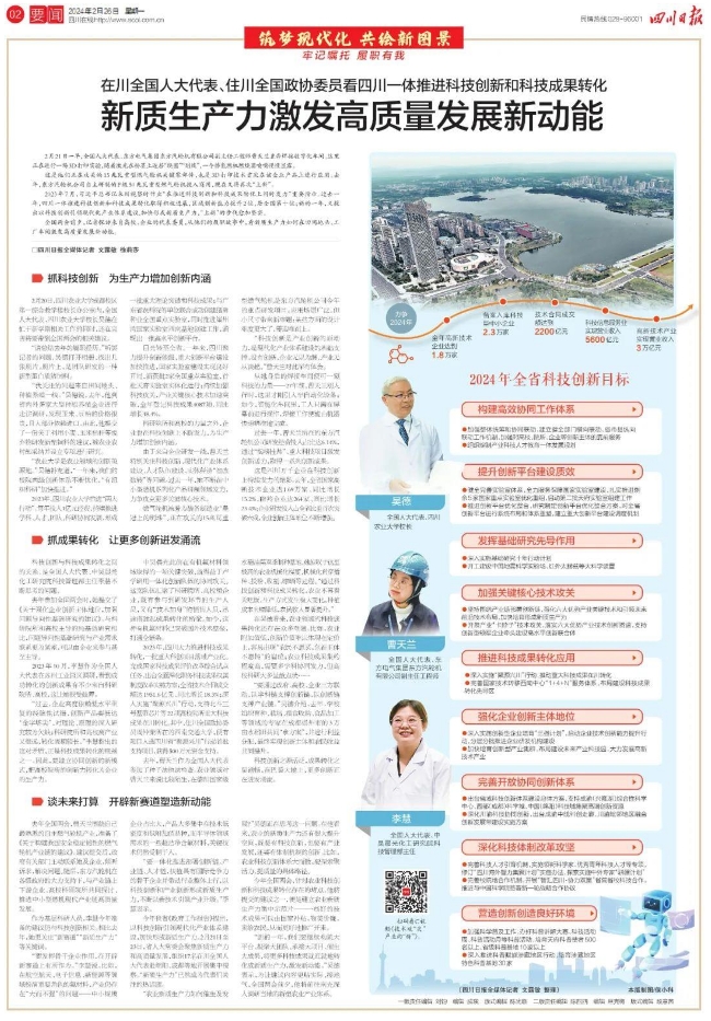 向总书记报告⑥四川:突出特色优势 因地制宜发展新质生产力